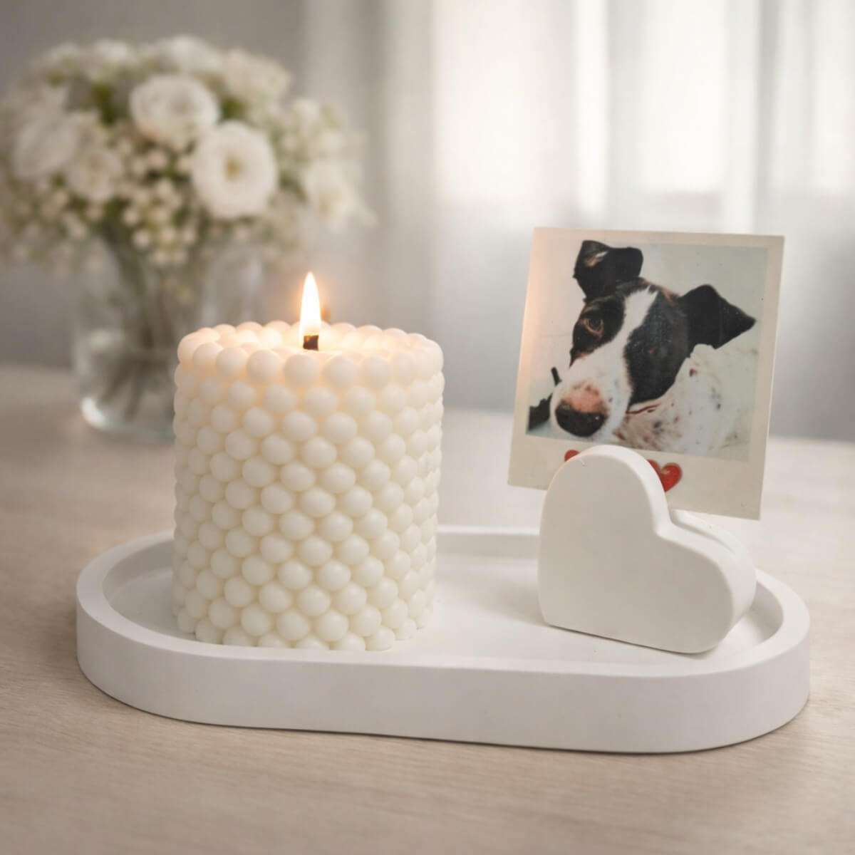 O Kit Aromático Presente Afetivo é uma opção delicada e cheia de significado, com vela aromática, porta foto decorativo, bandeja e inclusão de foto enviada pelo cliente em formato Polaroid, criando um presente especial para emocionar em ocasiões marcantes.